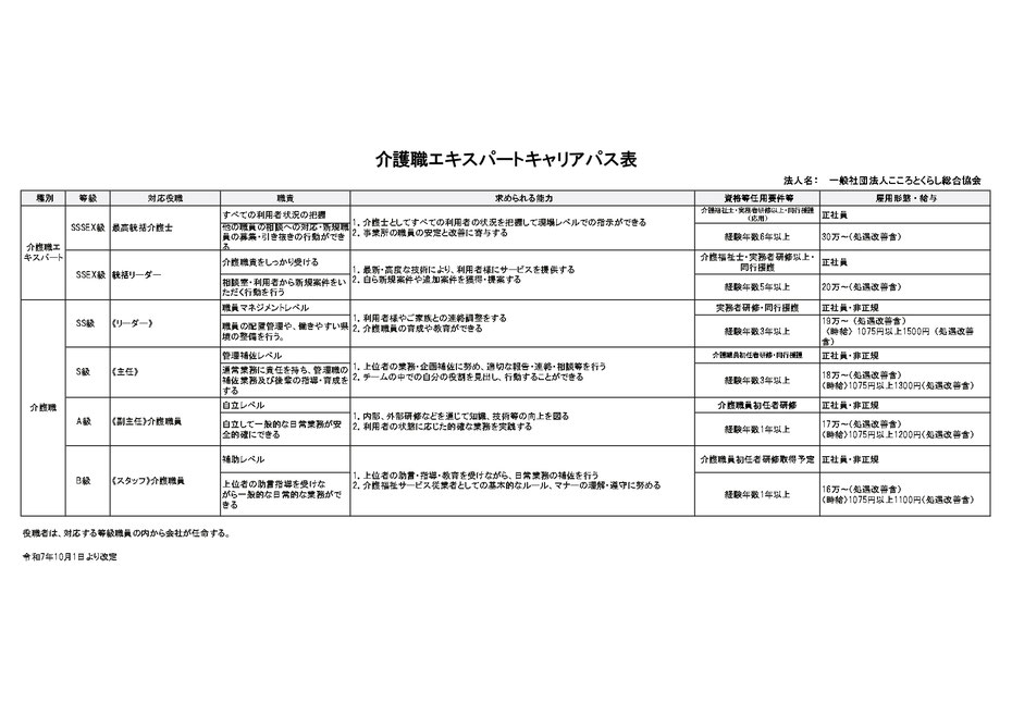 弊法人では管理職以外にもヘルパーのエキスパートとしてのキャリアアップを目指せる仕組みがあります。